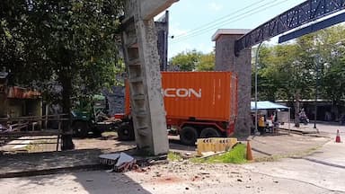 Gapura Terminal Gayatri Tulungagung Nyaris Roboh Tertabrak Truk Kontainer