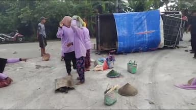 Hindari Pemotor, Truk Wing Box Tabrak Median Jalan di Depan SPN Mojokerto