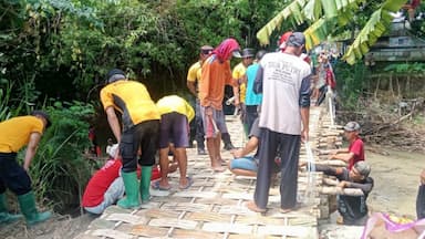 Warga Gotong Royong Bangun Jembatan Darurat Penghubung Lamongan–Bojonegoro