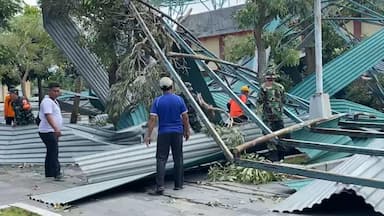 Pasca Robohnya Atap Stadion Gelora Penataran, Tim Gabungan Lakukan Pembersihan