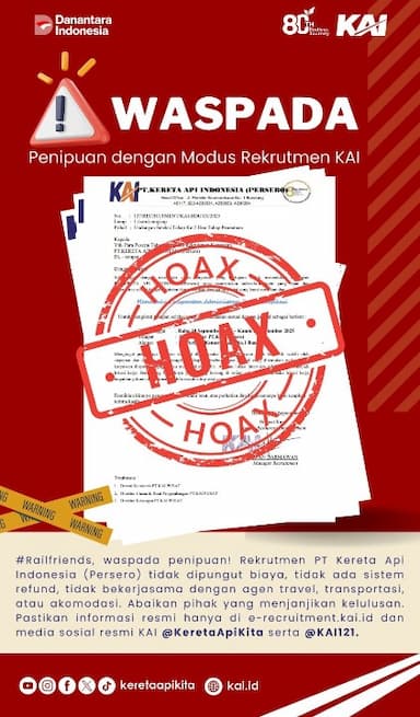 Waspada Rekrutmen Palsu, KAI Imbau Masyarakat Jangan Tertipu