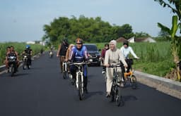 Sambil Gowes, Ning Ita Cek Proyek Pembangunan Kota Mojokerto